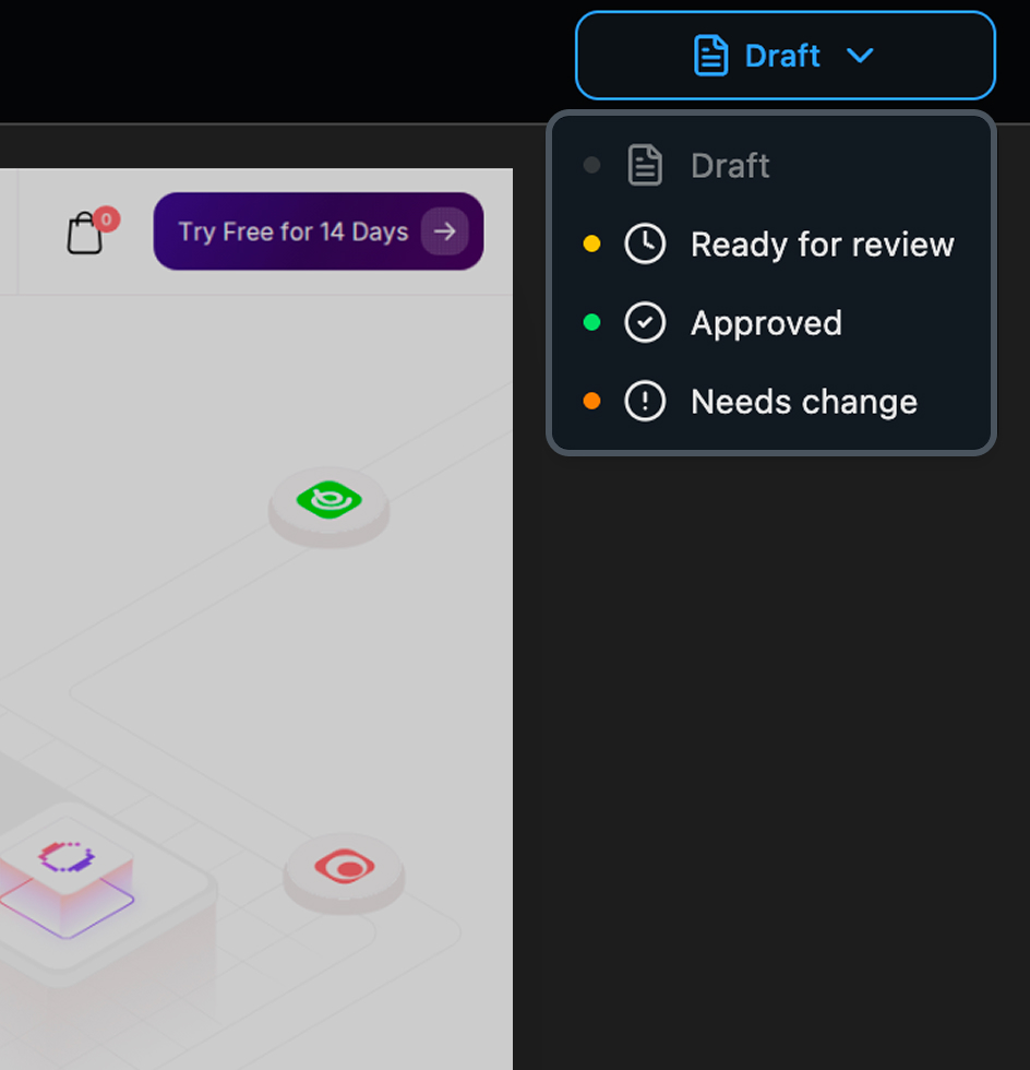 Use visual comparison tools, leave comments, and move pages through review statuses before anything goes live.