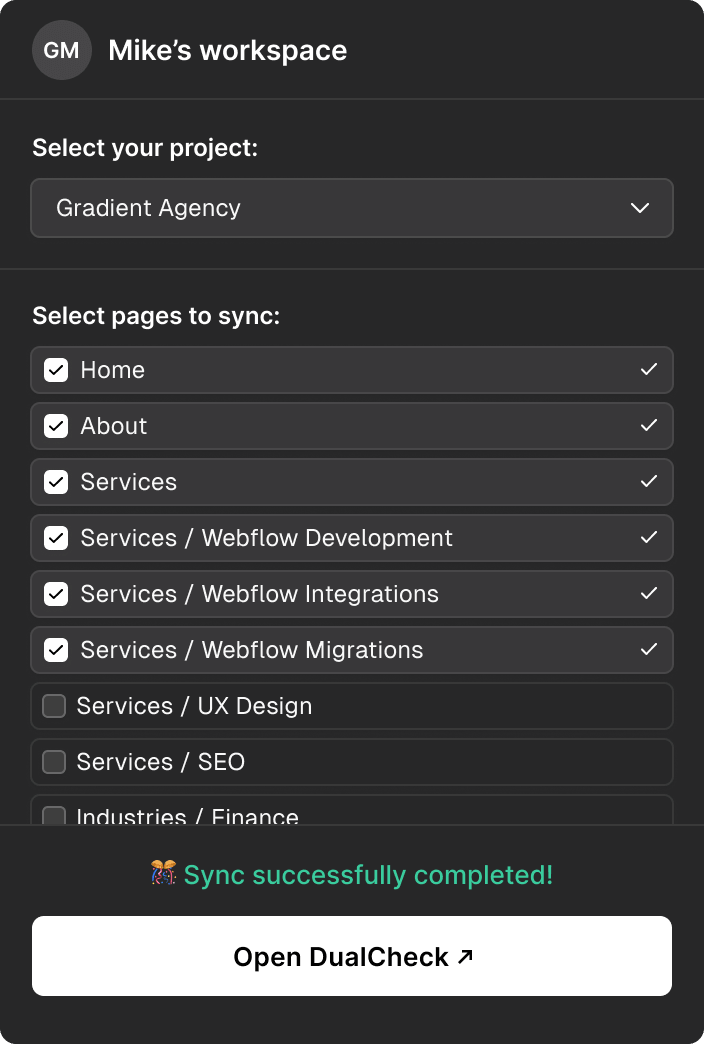 DualCheck connects to your website and automatically matches live pages with their corresponding Figma designs.